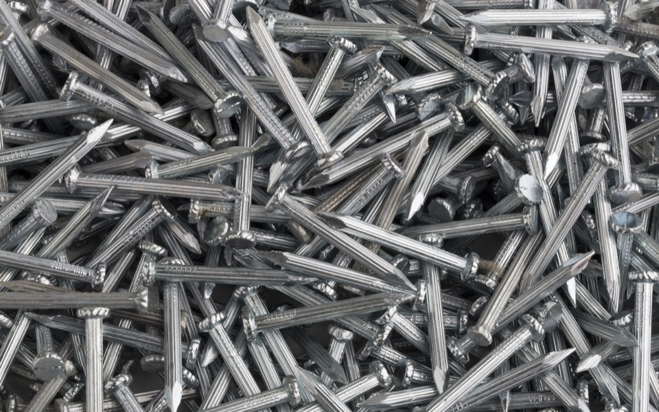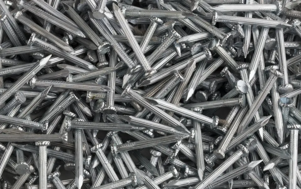 Clavo de acero alto carbono, templado y revenido, con cabeza plana, punta de diamante y vástago estriado que mejora la adherencia en concreto y mampostería. Cumple ASTM F1667, tipo Hardened Concrete Nail.